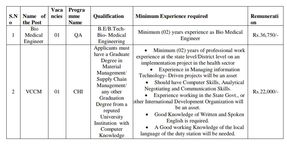 తాజాగా విడుదలైన ఈ నోటిఫికేషన్స్ ద్వారా మెడికల్ ఆఫీసర్, స్టాఫ్ నర్స్, బయో మెడికల్ ఇంజనీర్ మరియు VCCM అనే ఉద్యోగాలు భర్తీ చేస్తున్నారు.