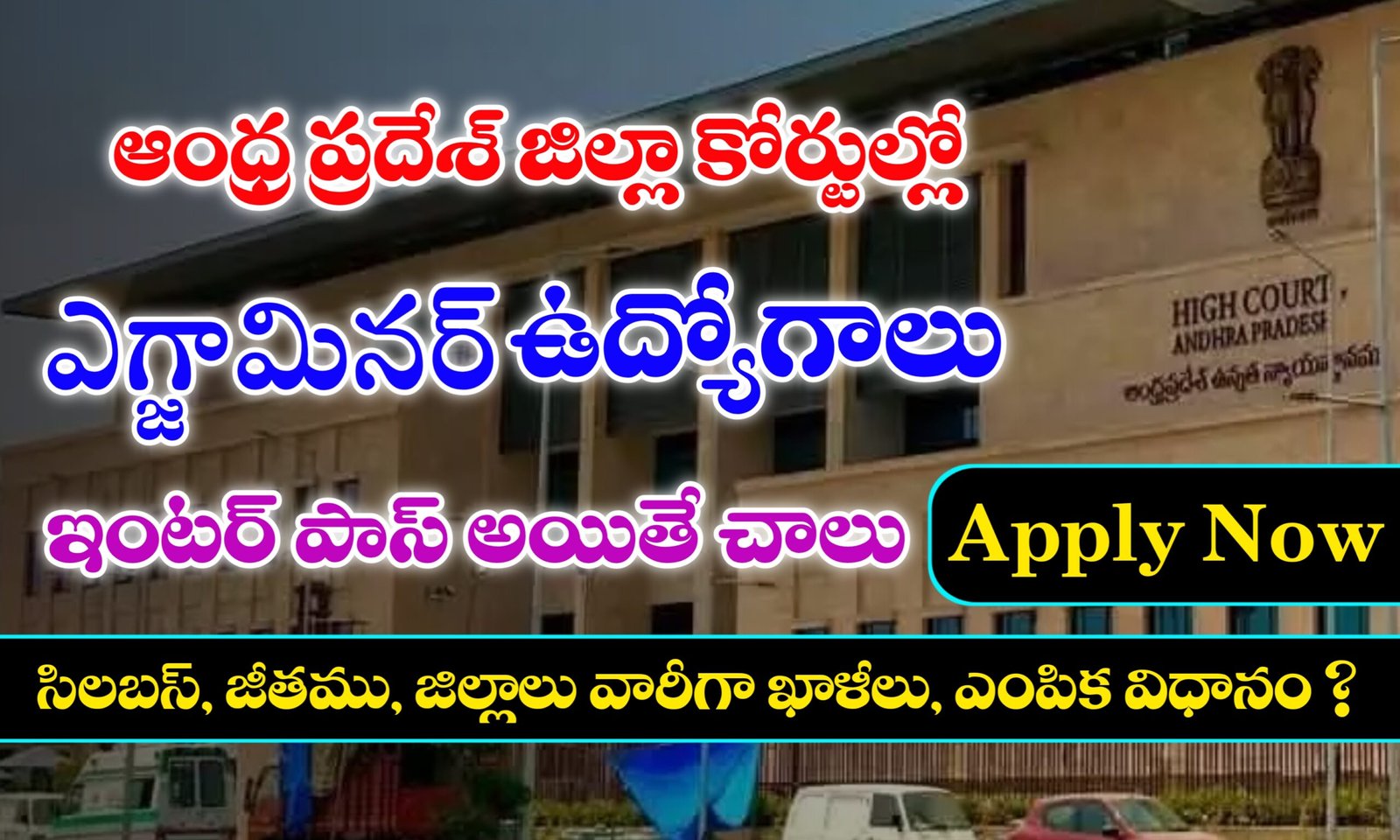 ఆంధ్రప్రదేశ్ రాష్ట్ర హైకోర్టు నుండి జిల్లా కోర్టులలో ఎగ్జామినర్ ఉద్యోగాల భర్తీ కోసం దరఖాస్తులు కోరుతూ ఈ నోటిఫికేషన్ విడుదలైంది.