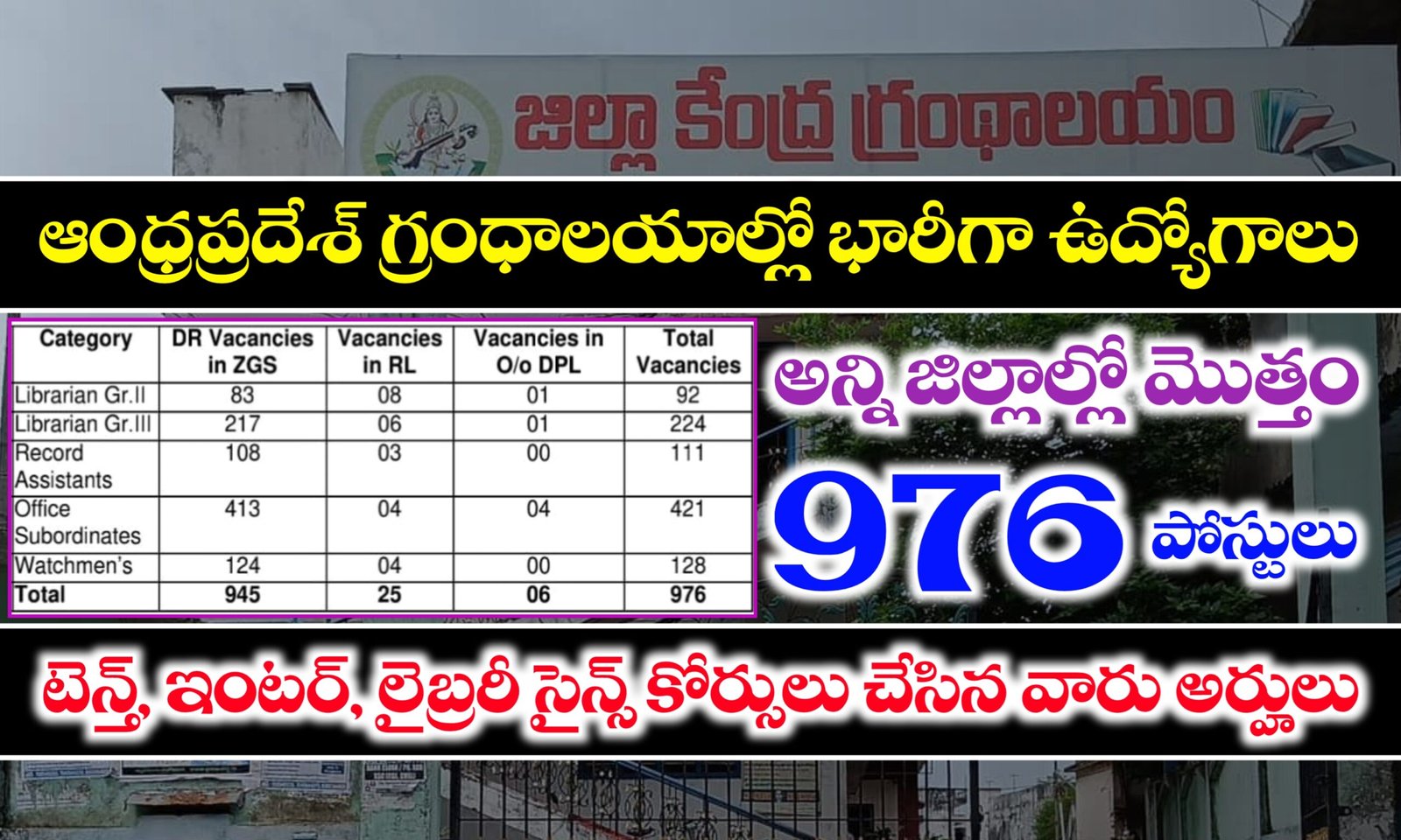 ఆంధ్రప్రదేశ్ లో గ్రంథాలయాల్లో 976 ఉద్యోగాలు భర్తీ | AP Public Libraries Department Vacancies | Andhra Pradesh Library Jobs