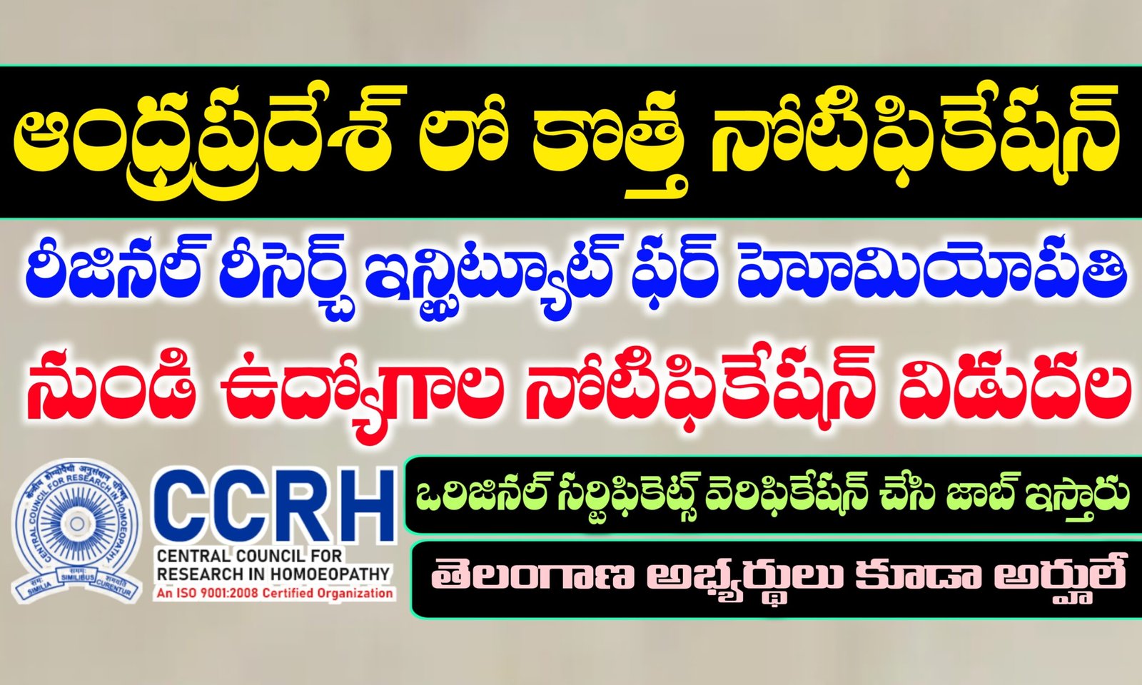 - సెంట్రల్ కౌన్సిల్ ఫర్ రీసెర్చ్ ఇన్ హోమియోపతీ (CCRH) యొక్క దరీజినల్ రీసెర్చ్ ఇనిస్టిట్యూట్ ఫర్ హోమియోపతీ, గుడివాడ (ఆంధ్ర ప్రదేశ్) సంస్థ నుండి ఈ నోటిఫికేషన్ విడుదల చేసింది.