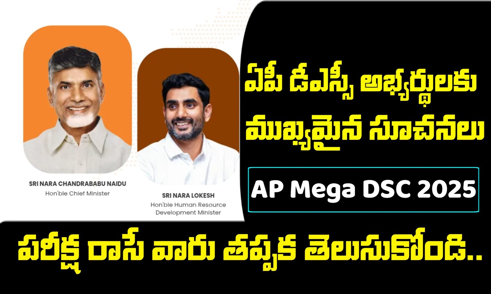 మెగా DSC పరీక్ష రాసే అభ్యర్థుల యొక్క సౌకర్యార్థం ఈ ఆర్టికల్ లో పలు సూచనలు తెలియచేయడం జరిగింది.
