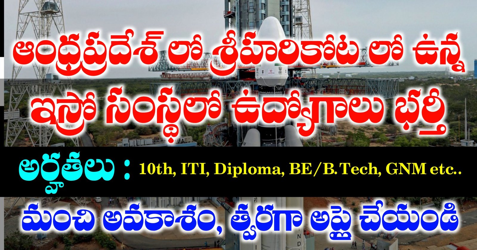 - సతీష్ ధావన్ స్పేస్ సెంటర్ సంస్థ నుండి ఈ ఉద్యోగ నోటిఫికేషన్ విడుదల అయ్యింది.