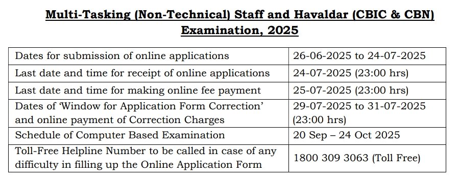 SSC MTS & Havaldar Recruitment 2025 Important Dates :