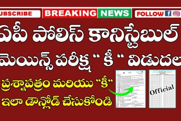ఆంధ్రప్రదేశ్ పోలీస్ కానిస్టేబుల్ మెయిన్స్ ఎగ్జామినేషన్ కోసం ప్రిపేర్ అవుతున్న అభ్యర్థులకు గుడ్ న్యూస్. వివిధ కారణాల వలన వాయిదా పడుతూ వచ్చిన మెయిన్స్ పరీక్ష తేదీని ఆంధ్రప్రదేశ్ రాష్ట్ర పోలీస్ నియామక మండలి ఈరోజు అధికారికంగా ప్రకటించింది. రాష్ట్రంలో 6,100 పోలీస్ కానిస్టేబుల్ పోస్టులకు గాను మెయిన్స్ పరీక్షను 01-06-2025 తేదీన నిర్వహించబోతున్నట్టు పత్రికా ప్రకటన విడుదల చేసింది. నోటిఫికేషన్ ముఖ్యమైన వివరాలు : 🏹 APSLPRB Official Website – Click here