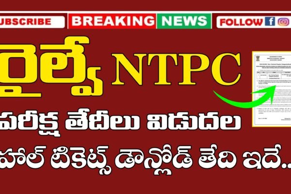 Railway NTPC (Graduate) Exam Dates : రైల్వేలో నాన్ టెక్నికల్ పాపులర్ కేటగిరీస్ (గ్రాడ్యుయేట్) ఉద్యోగాల పరీక్ష తేదీలను రైల్వే రిక్రూట్మెంట్ బోర్డు అధికారికంగా ప్రకటించింది. జూన్ 5వ తేదీ నుండి జూన్ 23వ తేదీ వరకు 15 రోజులు పాటు పరీక్షలు నిర్వహించబోతున్నట్లు రైల్వే రిక్రూట్మెంట్ బోర్డు తాజాగా విడుదల చేసిన నోటీసు ద్వారా తెలియజేసింది. పరీక్ష తేదీకి పది రోజులు ముందు అభ్యర్థులు తమ పరీక్ష తేదీ మరియు పట్టణం వివరాలు తెలుసుకోవచ్చు….