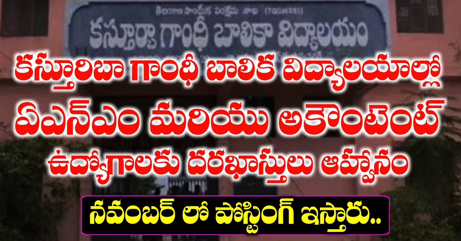 తెలంగాణ రాష్ట్రంలో కస్తూరిబా గాంధీ బాలిక విద్యాలయాల్లో అకౌంటెంట్ మరియు ఏఎన్ఎం ఉద్యోగాల భర్తీ కోసం అర్హత ఉన్నవారి నుంచి దరఖాస్తులు కోరుతూ నోటిఫికేషన్ విడుదలైంది. ఈ నోటిఫికేషన్ ద్వారా భర్తీ చేస్తున్న ఉద్యోగాలకు అర్హత ఉండేవారు అక్టోబర్ 24 వ తేదీ నుండి అక్టోబర్ 27వ తేదీలోపు అప్లై చేయాలి.. ఈ ఉద్యోగాలకు అర్హత ఉన్న స్థానిక మహిళలు అర్హులు. ఒకటవ తరగతి నుండి 7వ తరగతి వరకు ఉన్న స్టడీ సర్టిఫికెట్స్ ఆధారంగా స్థానికత నిర్ధారిస్తారు.