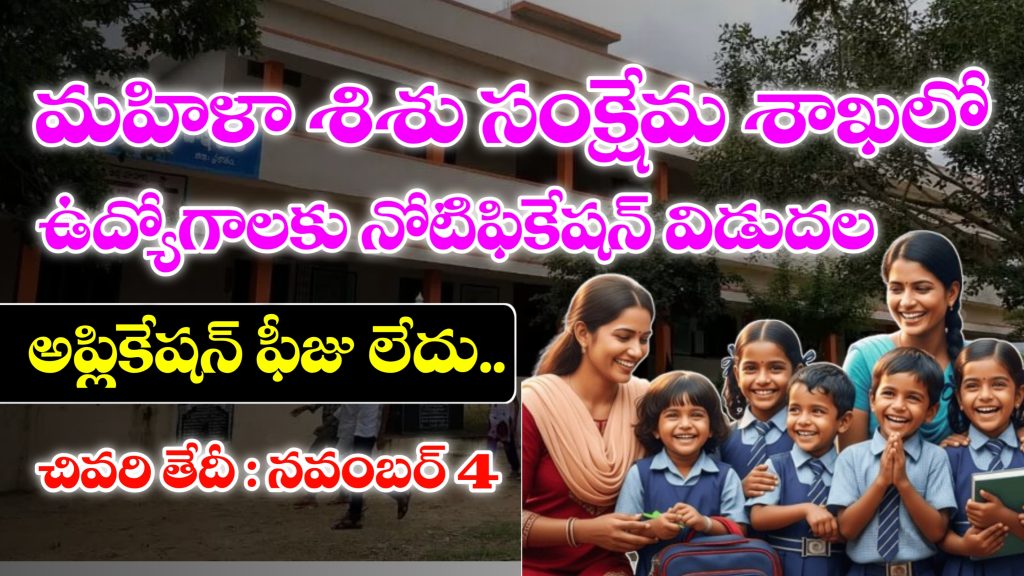 ఆంధ్రప్రదేశ్ రాష్ట్రంలో అనంతపురం జిల్లాలో మహిళా శిశు సంక్షేమ శాఖలో మిషన్ వాత్సల్య పథకం క్రింద బాలసదన్ మరియు స్పెషలైజ్డ్ అడాప్షన్ ఏజెన్సీ నందు వివిధ రకాల ఉద్యోగాలను భర్తీ చేసేందుకు అర్హత ఉన్న అభ్యర్థులు నుండి దరఖాస్తులు కోరుతూ నోటిఫికేషన్ విడుదల చేసారు.. ఈ నోటిఫికేషన్ ద్వారా ఆయా, డాక్టర్, ఎడ్యుకేటర్ ఆర్ట్ అండ్ క్రాఫ్ట్ కమ్ మ్యూజిక్ టీచర్ ఉద్యోగాలు భర్తీ చేస్తున్నారు. అర్హత ఉన్న తమ దరఖాస్తులను నవంబర్ 4వ తేది లోపు…