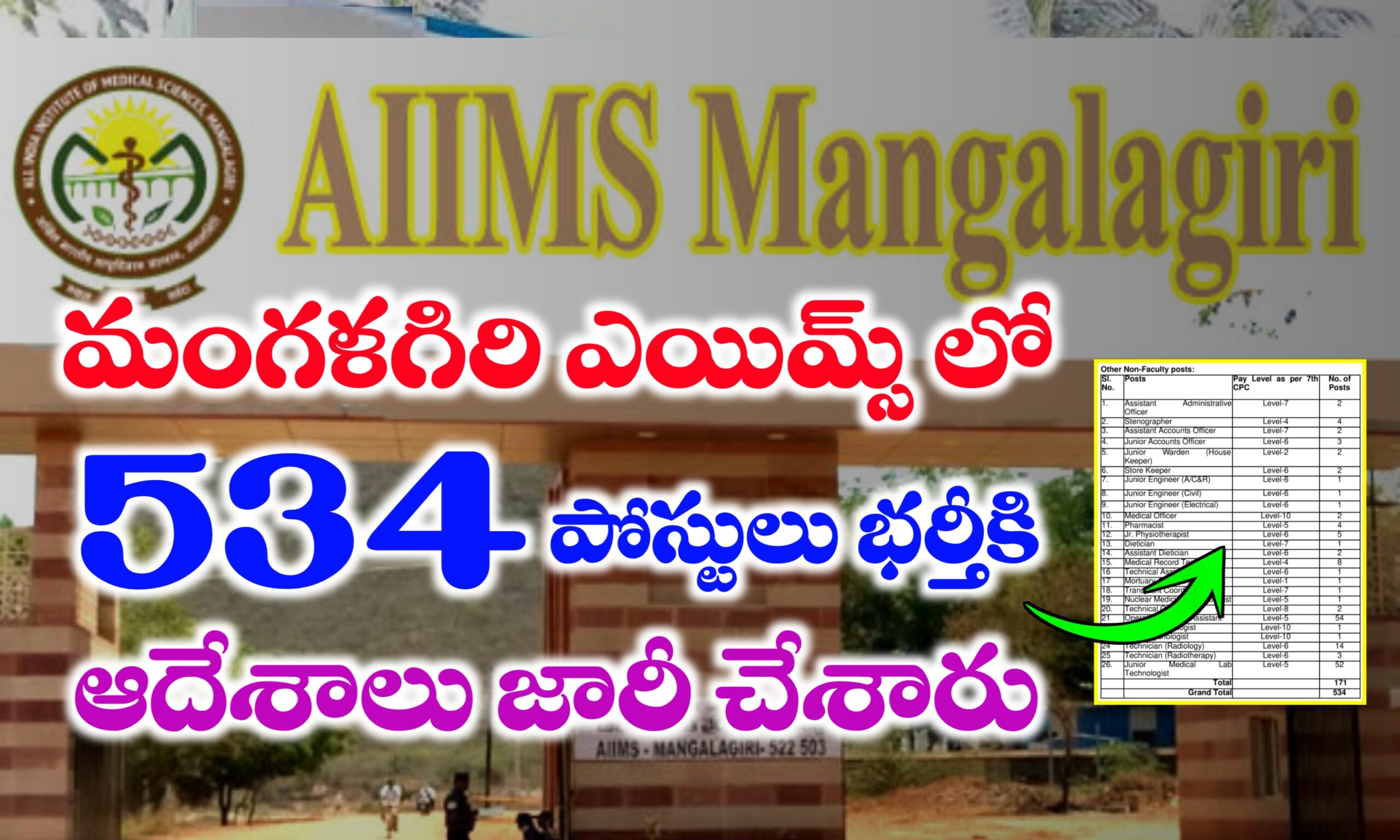 ఆంధ్రప్రదేశ్ లో మంగళగిరిలో ఉన్న ఆల్ ఇండియా ఇన్స్టిట్యూట్ ఆఫ్ మెడికల్ సైన్స్ లో కొత్తగా 534 పోస్టులను భర్తీ చేసేందుకు అనుమతిస్తూ కేంద్ర వైద్య ఆరోగ్య మరియు కుటుంబ సంక్షేమ శాఖ నుండి ఆదేశాలు జారీ కావడం జరిగింది.