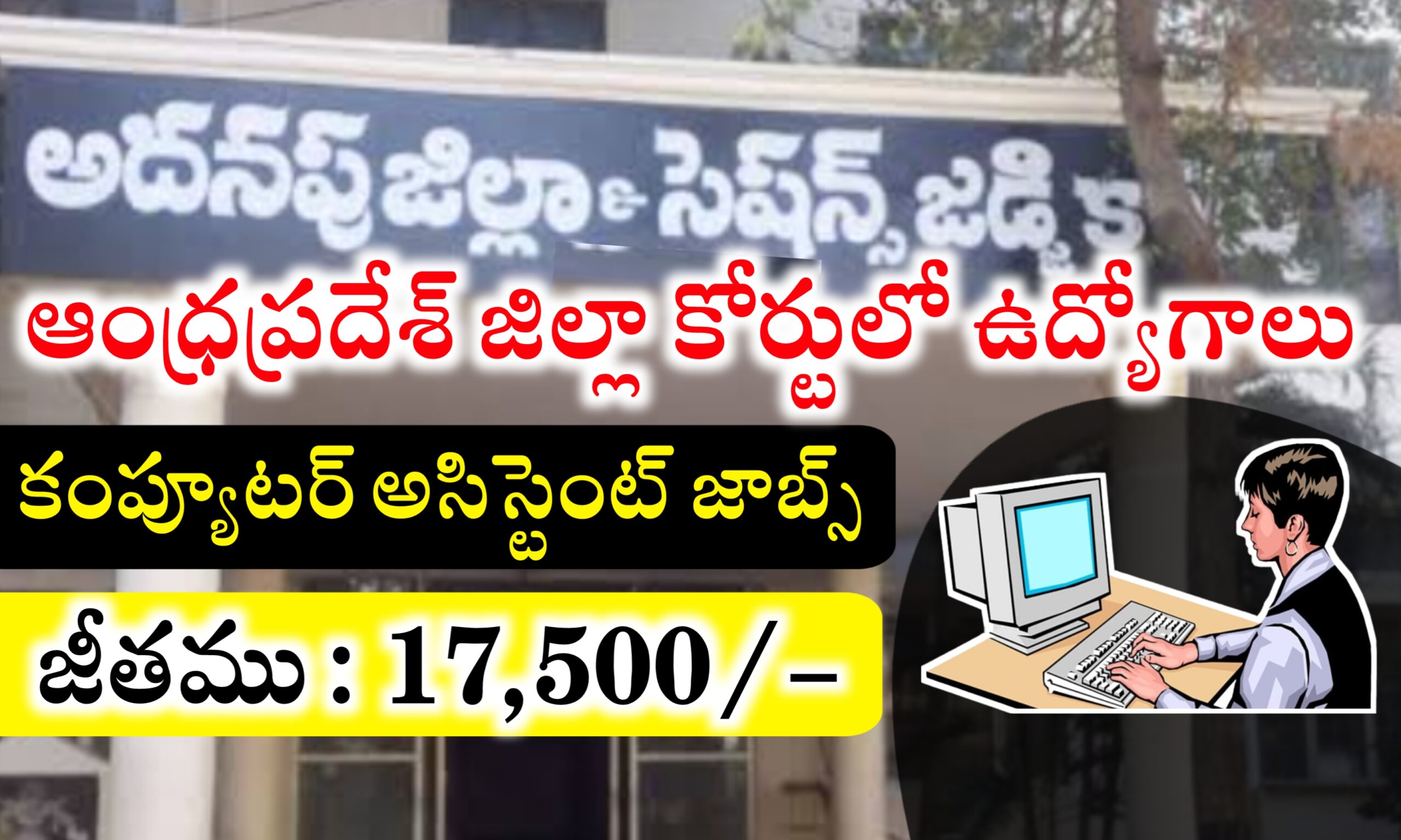ఆంధ్రప్రదేశ్ రాష్ట్రంలో జిల్లా కోర్టులో ఉద్యోగాల భర్తీకి దరఖాస్తులు కోరుతూ నోటిఫికేషన్ విడుదల చేశారు. ఈ నోటిఫికేషన్ కంప్యూటర్ అసిస్టెంట్ అనే ఉద్యోగాన్ని భర్తీ చేసేందుకు అర్హత కలిగిన వారి నుంచి దరఖాస్తులు కోరుతూ విడుదల చేయడం జరిగింది.