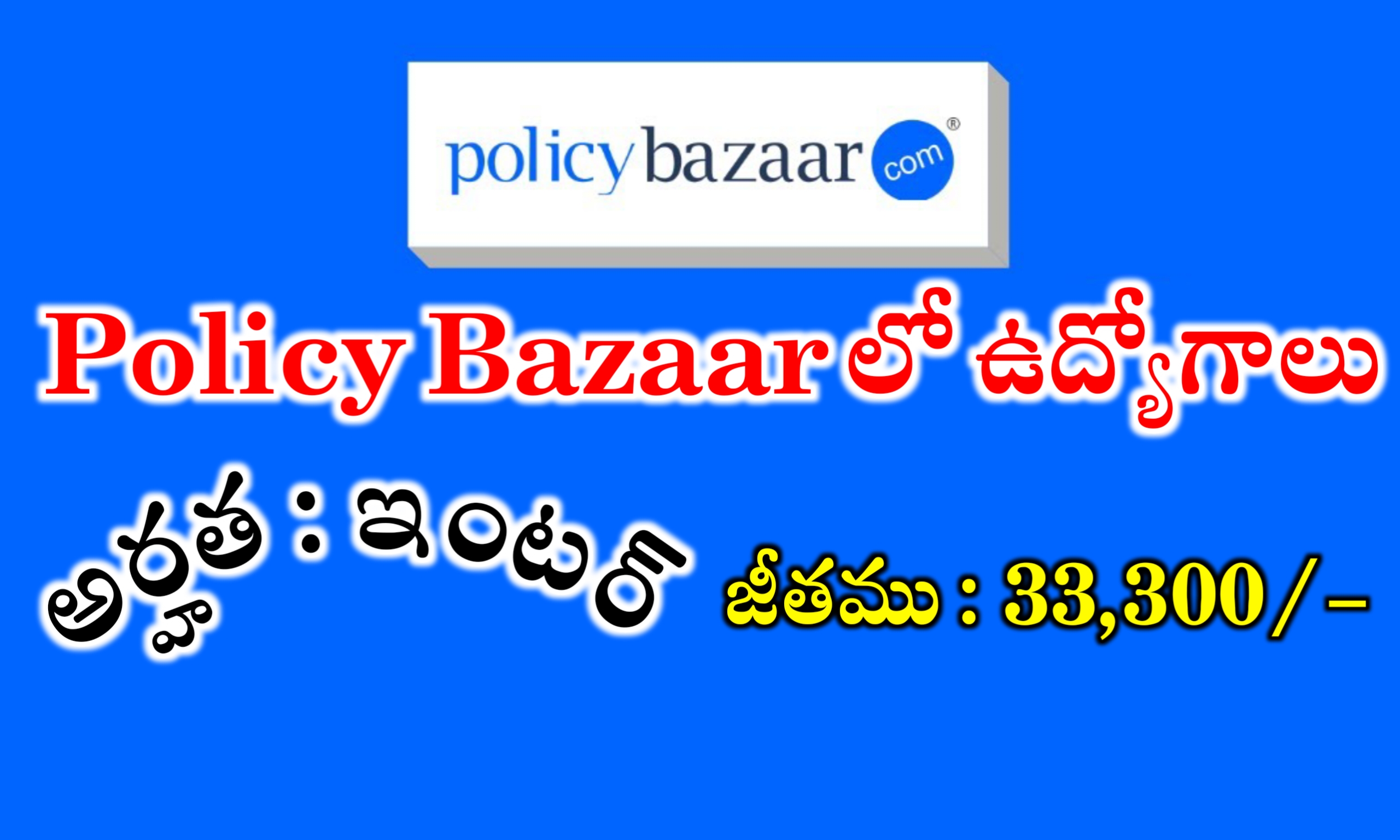 - ప్రస్తుతం పాలసీ బజార్ (Policy Bazaar) సంస్థలో ఉద్యోగాల కోసం రిక్రూట్మెంట్ జరుగుతుంది..