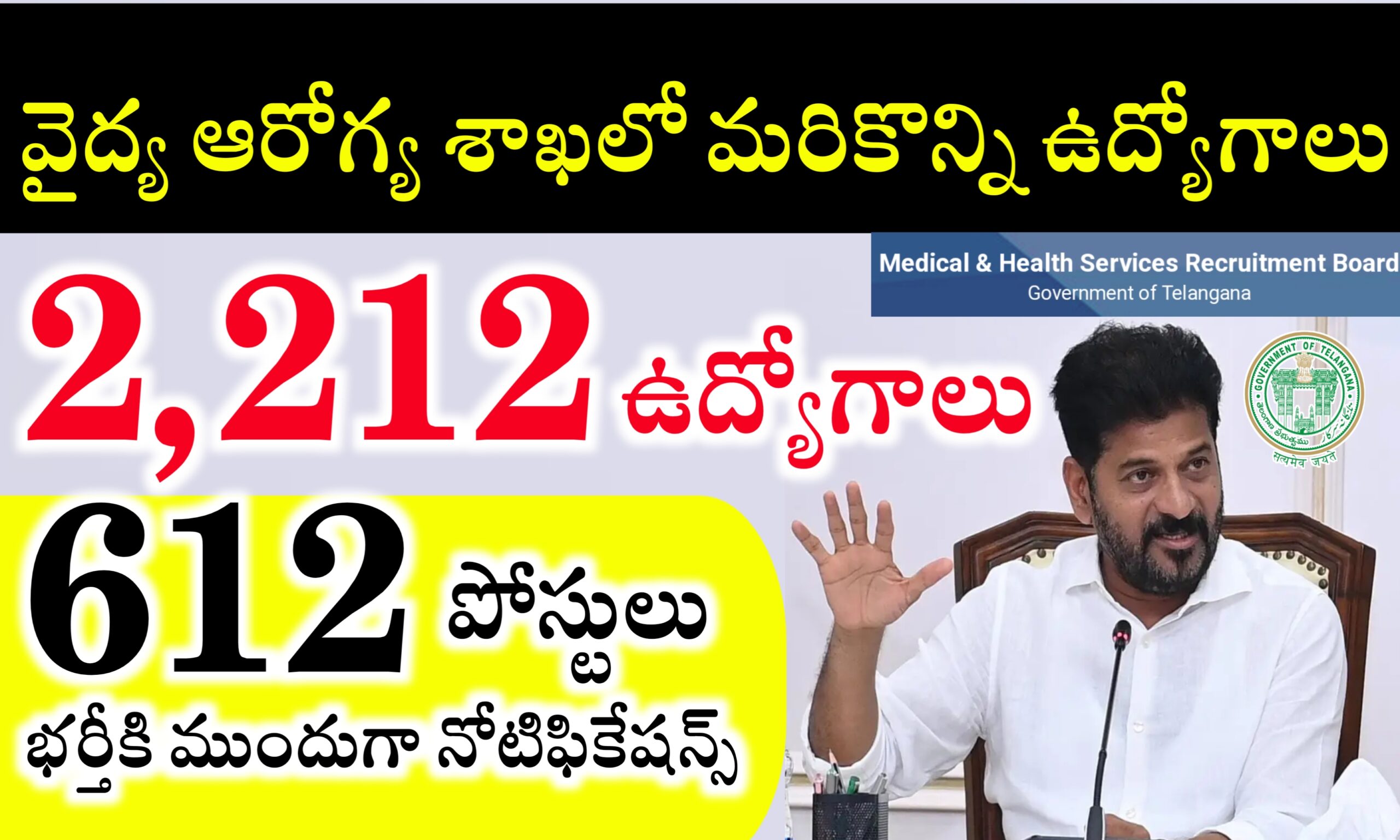 తెలంగాణ రాష్ట్రంలో వైద్య ఆరోగ్యశాఖలో మరో 2212 ఉద్యోగాలకు నోటిఫికేషన్స్ విడుదల కాబోతున్నాయి..