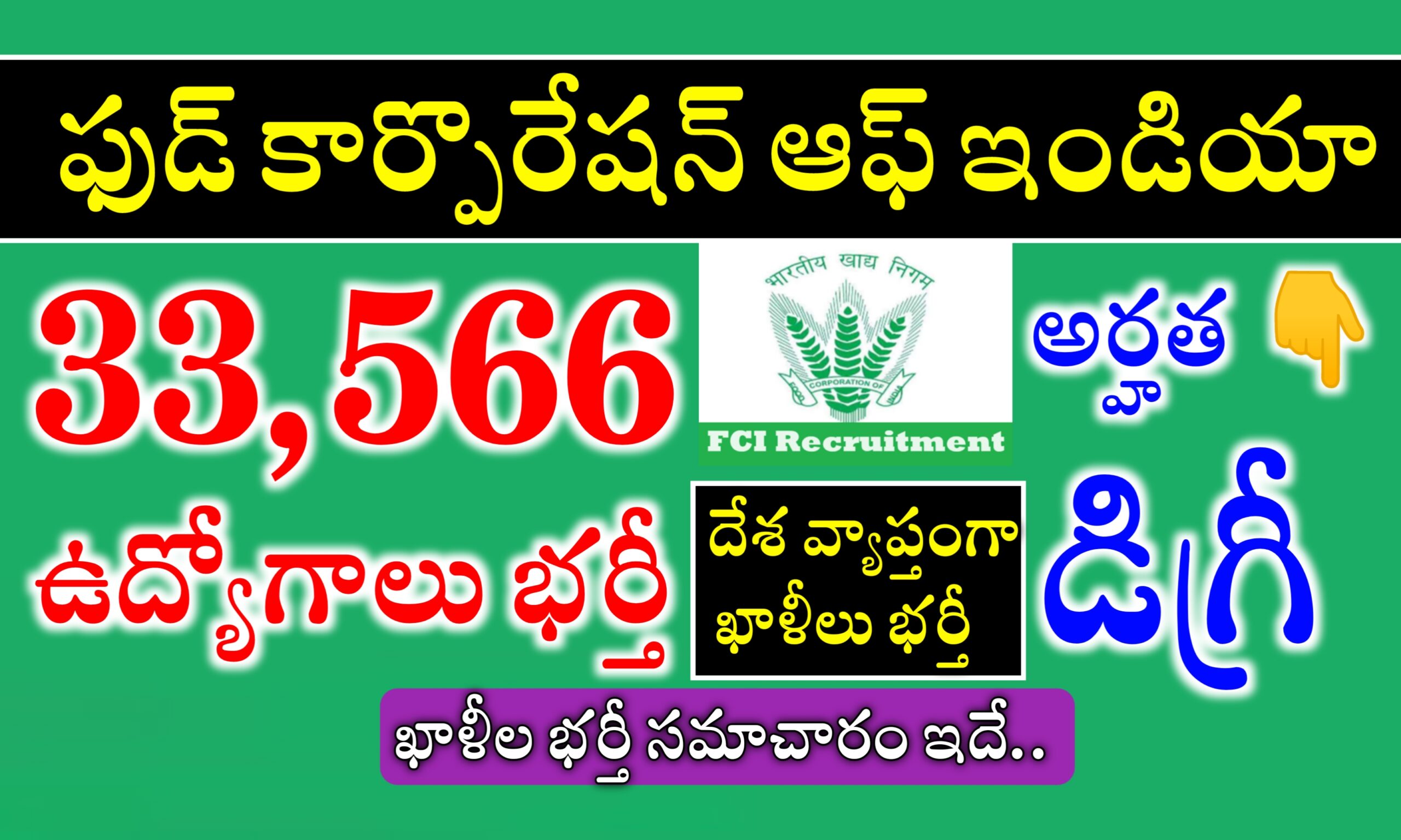 - FCI నుండి మరికొద్ది రోజులలో వివిధ ఉద్యోగాలకు నోటిఫికేషన్ విడుదల కానున్న నేపథ్యంలో ఈ ఆర్టికల్ లో ముందుగా వివరాలు తెలియచేయడం జరిగింది. నోటిఫికేషన్ విడుదల అయిన తర్వాత పూర్తి సమాచారాన్ని మరొక ఆర్టికల్ లో తెలియచేయడం జరుగును.