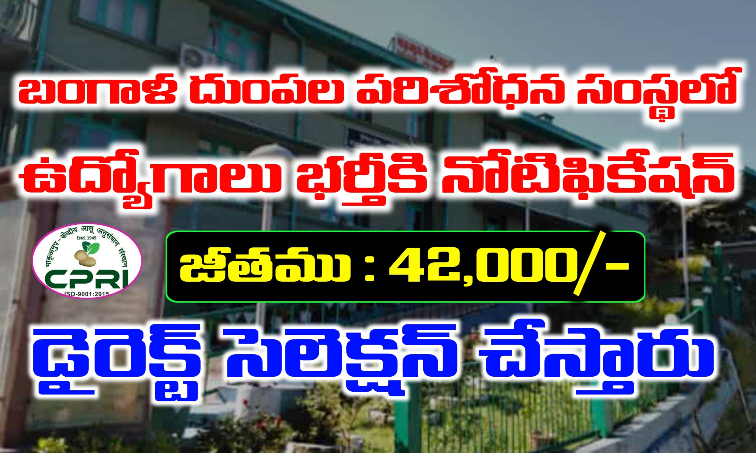 - ICAR – సెంట్రల్ పొటాటో రీసెర్చ్ ఇనిస్టిట్యూట్ (CPRI) సంస్థ కాంట్రాక్టు ప్రాధిపతికన ఈ ఉద్యోగాల భర్తీ చేస్తుంది.