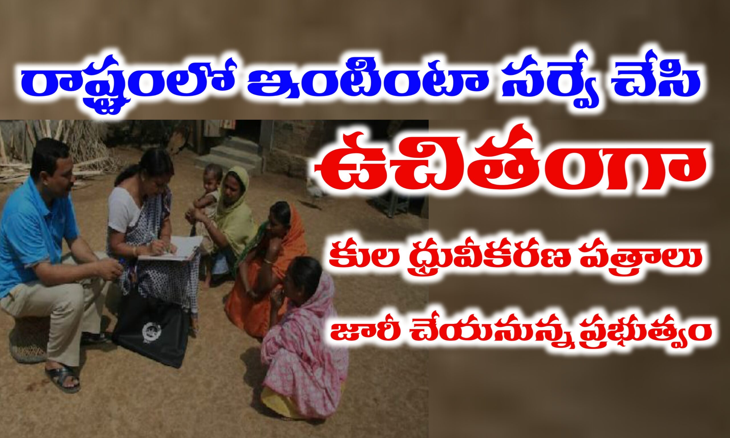 ఇందులో భాగంగా మరికొద్ది రోజుల్లో కుల దృవీకరణ పత్రాలు జారీ చేసేందుకు గాను రాష్ట్ర ప్రభుత్వం ఇంటింటి సర్వే చేయించనుంది.