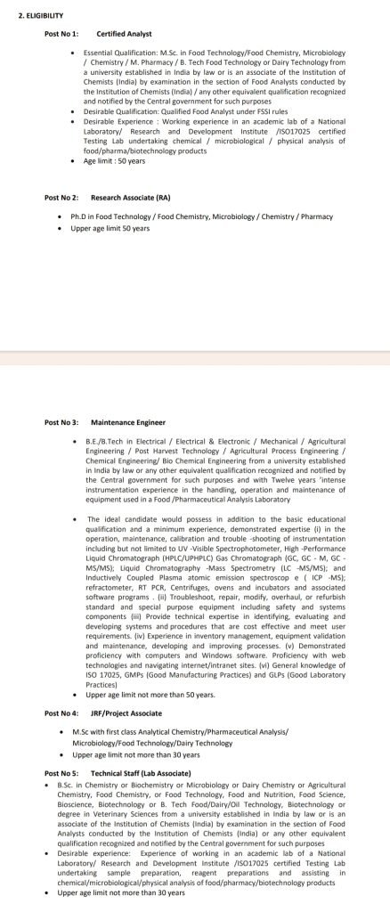 - సర్టిఫైడ్ అనలిస్ట్, రీసెర్చ్ అసోసియేట్, మెయింటెనెన్స్ ఇంజినీర్ ఉద్యోగాలకు గరిష్ట వయస్సు 50 సంవత్సరాలు లోపు ఉండాలి.