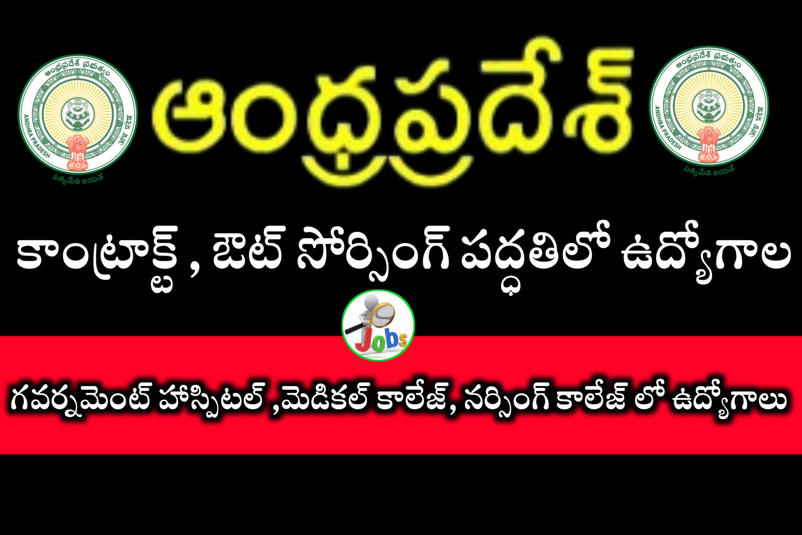 ఆంధ్రప్రదేశ్ రాష్ట్రంలో ప్రభుత్వ వైద్య సంస్థల్లో కాంట్రాక్టు మరియు ఔట్సోర్సింగ్ విధానంలో ఉద్యోగాల భర్తీకి దరఖాస్తులు కోరుతూ నోటిఫికేషన్ విడుదల చేశారు.