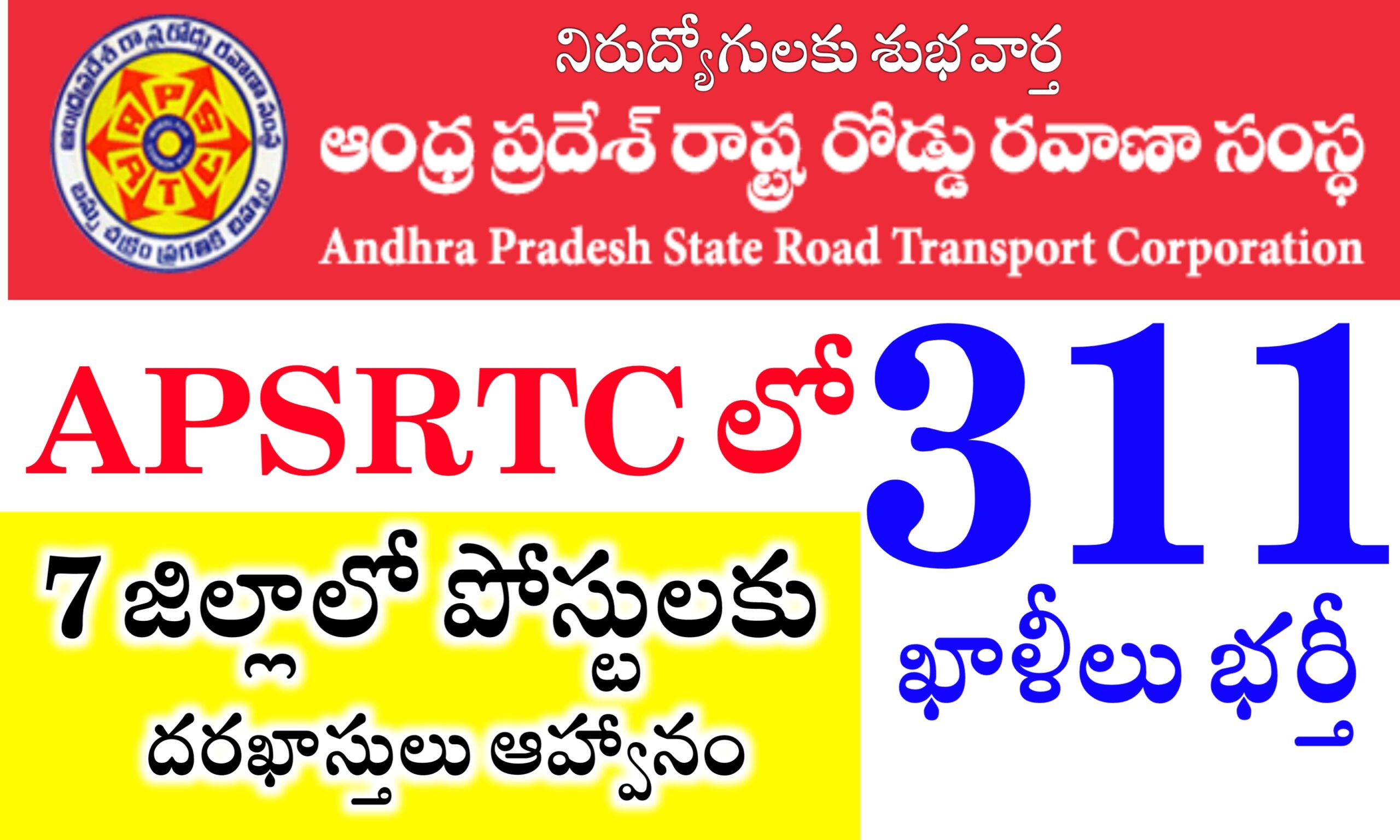- ఆంధ్రప్రదేశ్ రాష్ట్ర రోడ్ ట్రాన్స్పోర్ట్ కార్పొరేషన్ నుండి నోటిఫికేషన్ విడుదల చేసారు.