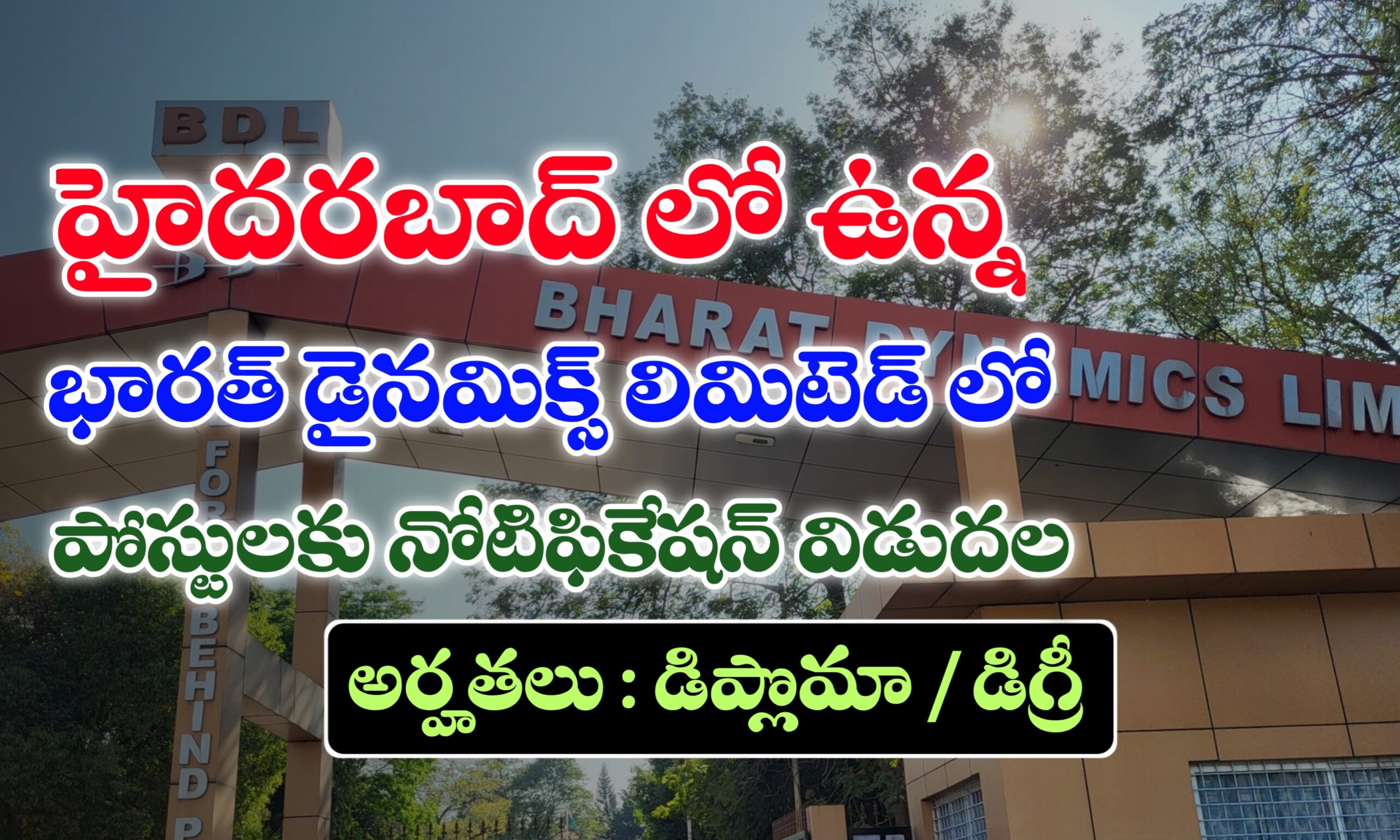 భారత ప్రభుత్వ ఎంటర్ ప్రైజ్, మినిస్ట్రీ ఆఫ్ డిఫెన్స్ పరిధిలో గల భారత్ డైనమిక్స్ లిమిటెడ్ సంస్థ నుండి అప్రెంటిస్ ఉద్యోగాల భర్తీ కొరకు నోటిఫికేషన్ విడుదల చేసింది.