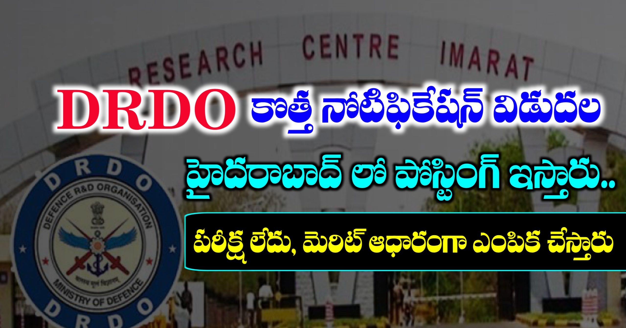 DRDO లో అప్రెంటిస్ పోస్టులకు నోటిఫికేషన్ విడుదల