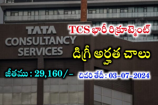 ప్రముఖ సాఫ్ట్వేర్ సంస్థ టాటా కన్సల్టెన్సీ సర్వీసెస్ (TCS) నుండి Customer Service Agent మరియు Webchat ( Email Customer Support ) అనే పోస్టులకు రిక్రూట్మెంట్ జరుగుతుంది.. డిగ్రి అర్హత తోనే ఈ పోస్టులకు అప్లై చేయవచ్చు. ఈ నోటిఫికేషన్ కు సంబంధించిన ముఖ్యమైన సమాచారం తెలుసుకొని అప్లై చేయండి. ✅ మీ వాట్సాప్ కి వివిధ ప్రభుత్వ మరియు ప్రైవేట్ ఉద్యోగాలు సమాచారం రావాలి అంటే వెంటనే మా వాట్సాప్ ఛానల్ లో…
